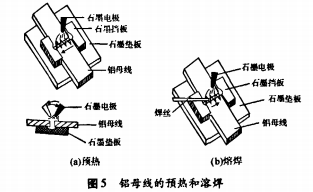 (8)焊工施焊時,焊工頭戴面罩,一手拿焊絲一手拿石墨碳棒,不斷地將已經生成的氧化鋁清出熔池。